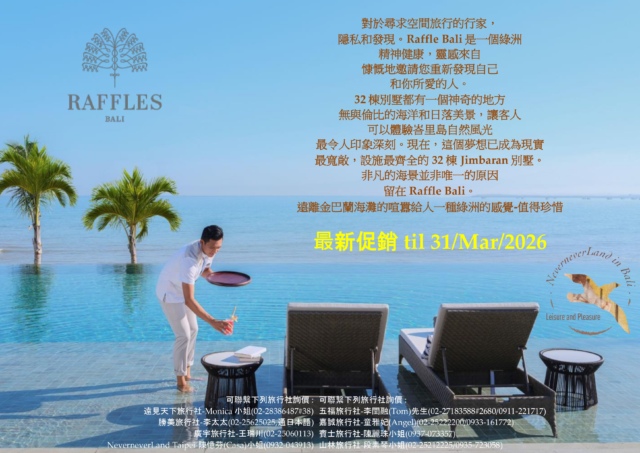 << Raffles Bali Jimbaran July/2020開放營運, 最新促銷 til 31/Mar/2026 >>