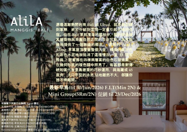 << Alila Manggis 最新早鳥(til 31/Mar/2026)促銷 til 23/Dec/2026 >>