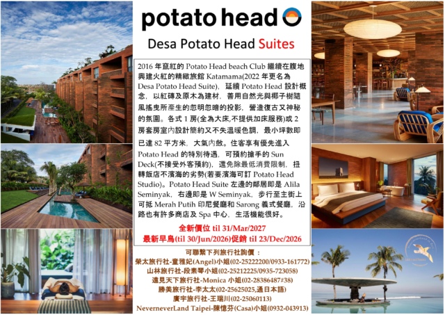 << Desa Potato Head Bali – Potato Head Suite Seminyak(前Katamama) 全新價位 til 31/Mar/2027 & 最新早鳥(til 30/Jun/2026)促銷 til 23/Dec/2026 >>