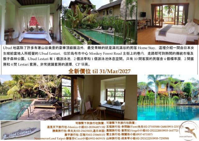 << Ubud Lestari Bungalow 全新價位 til 31/Mar/2027 >>