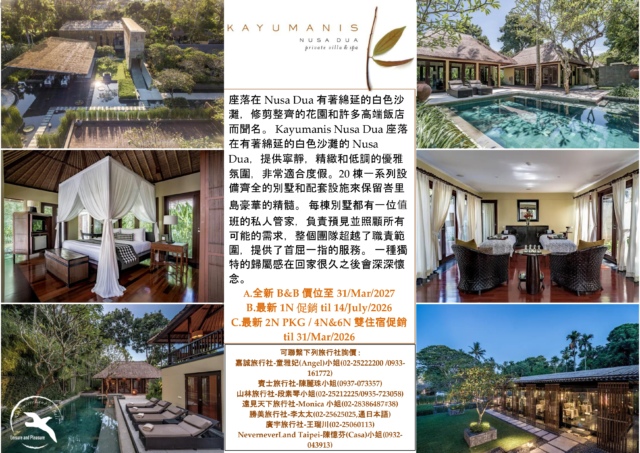 Kayumanis Nusa Dua 全新價位 til 31/Mar/2027 & 最新單晚促銷 til 14/July/2026 & 2N PKG/4N&6N Pair雙住宿 til 31/Mar/2026 OK