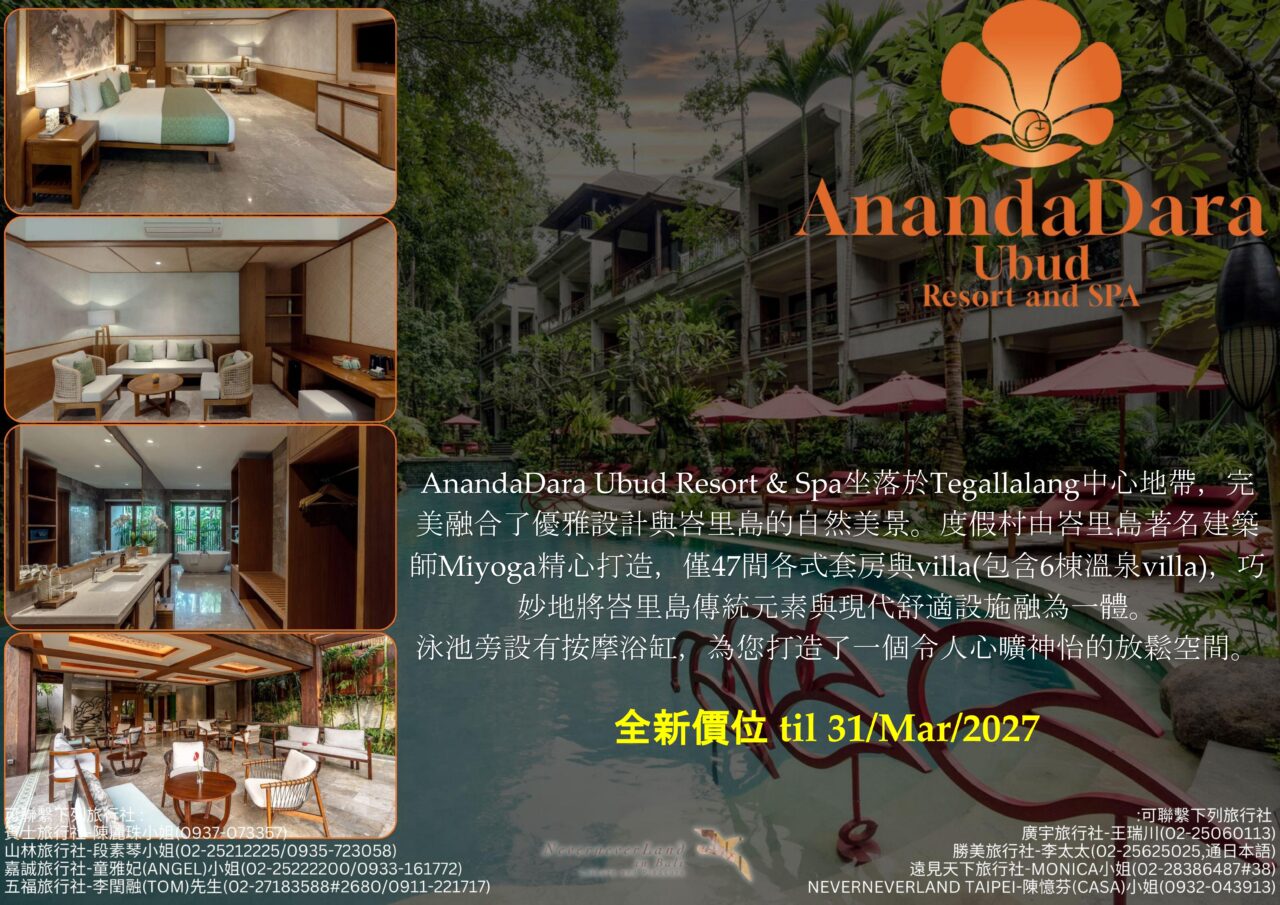<< AnandaDara Ubud Resort & Spa 全新價位 til 31/Mar/2027 >>