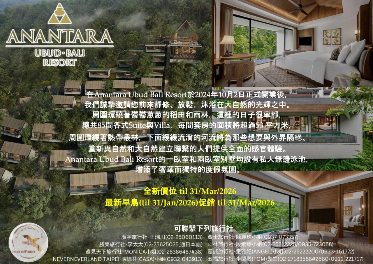 << Anantara Hotels & Resorts – Anantara Ubud Bali Resort 全新價位 til 31/Mar/2026 & 最新早鳥(til 31/Jan/2026)促銷 til 31/Mar/2026 >>