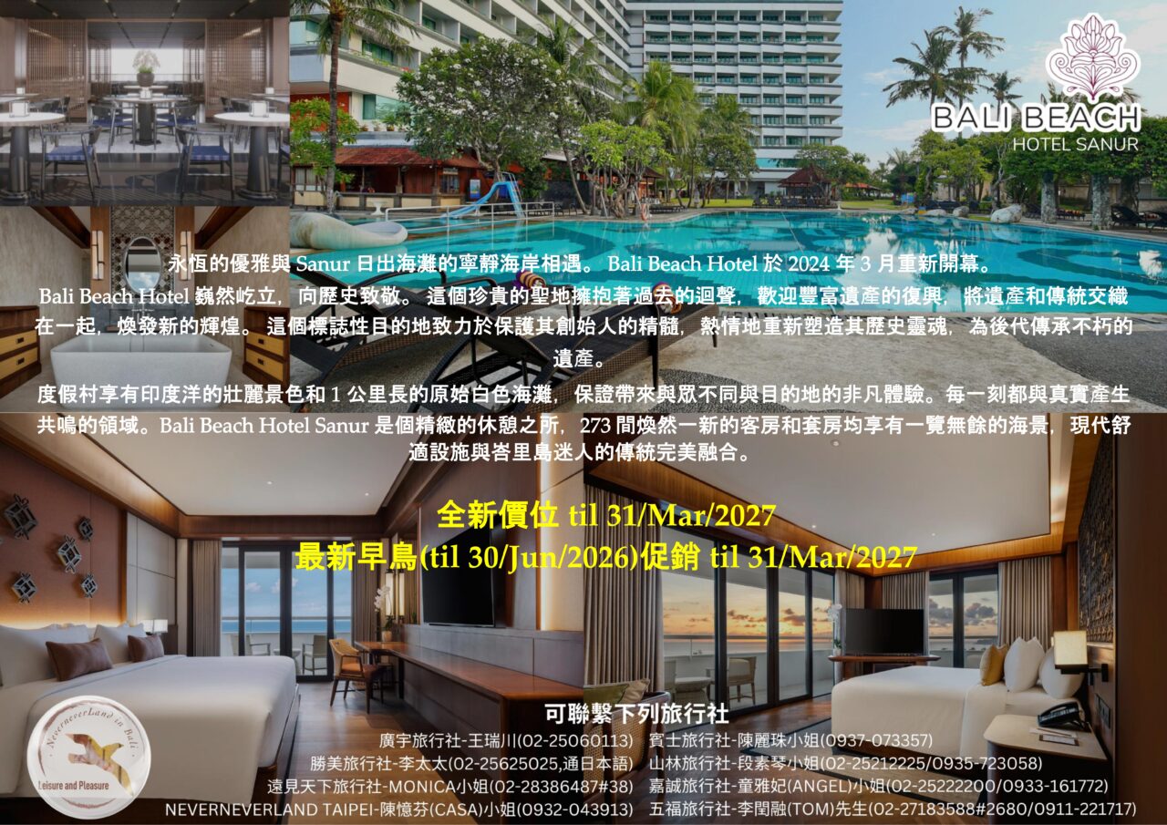 << Bali Beach Hotel – Sanur 全新價位 til 31/Mar/2027 & 最新早鳥(til 30/Jun/2026)促銷 til 31/Mar/2027 >>