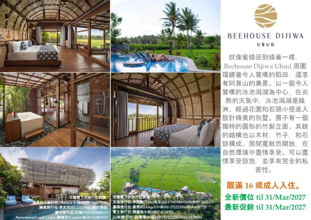 << BeeHouse Dijiwa Ubud 全新價位 til 31/Mar/2027 & 最新促銷 til 31/Mar/2027 >>
