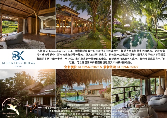 << Blue Karma Dijiwa Ubud 全新價位 til 31/Mar/2027 & 最新促銷 til 31/Mar/2027>>
