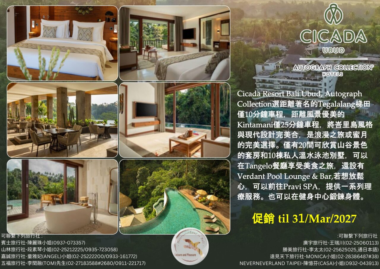 << Marriott – Cicada Resort Bali Ubud, Autograph Collection 最新促銷 til 31/Mar/2027 >>