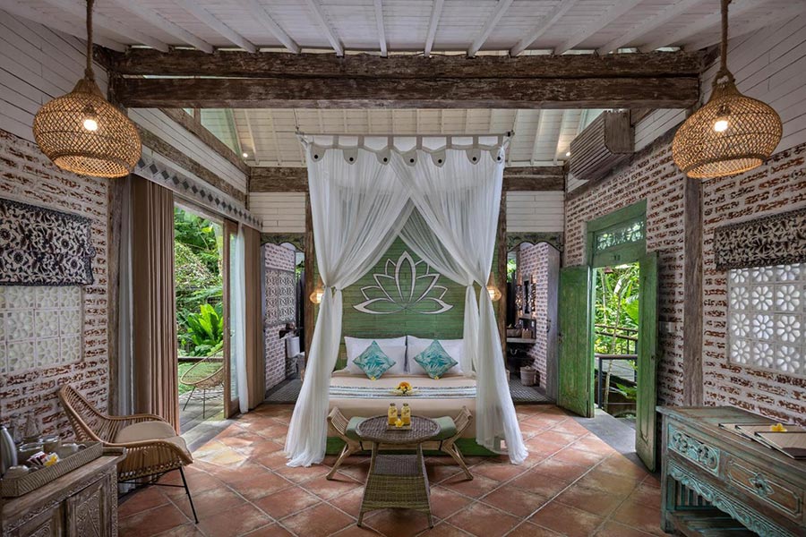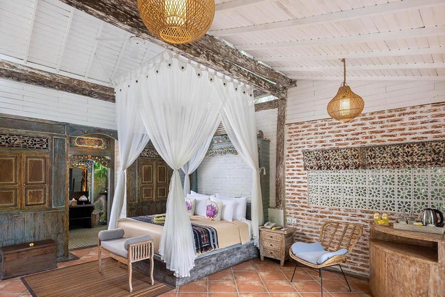 度假村的設計靈感來自印度、印尼和阿拉伯的建築風格,融合了世界各地的獨特元素,打造出多元文化的視覺饗宴。度假村內31間各式客房與Villa都飾以精美的手工細節,以致敬各文化源頭的影響。