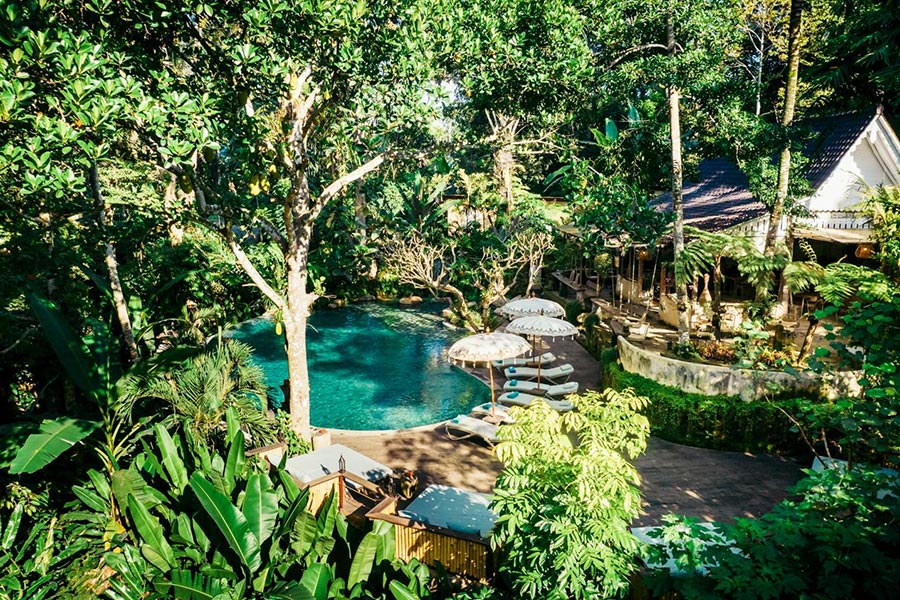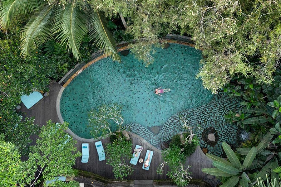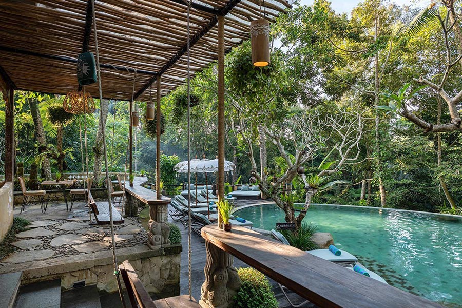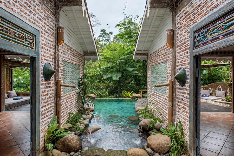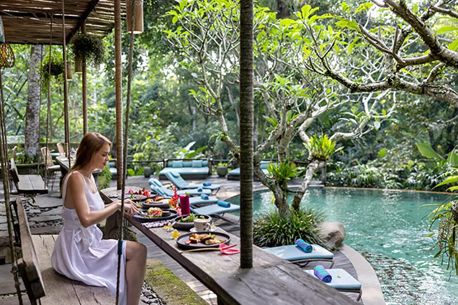 Feel the sensation of breakfast floating in the pool where the water comes from our natural springs and the jungle view compliments your morning. 感受在泳池中享用早餐的愜意,泳池水來自我們的天然泉水,叢林美景為您的清晨增添更多樂趣。