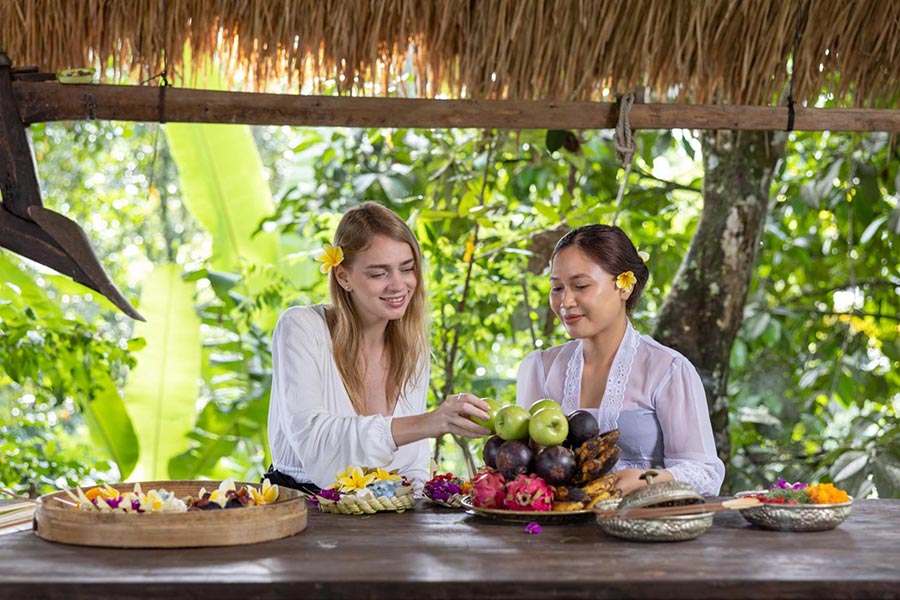 Complimentary every day starting from 14:00-15:00 at Paon Bali Experience becoming Balinese. We invite you to join our guest activity hosted at Paon Bali every day to practice making Balinese offering, Bumbu Bali (learning Balinese spice), Balinese dance, Wearing Balinese dress, Rindik Music Instrument lesson and some others activities. The details information about our Balinese activities is available at our reception from 07.00 to 23.00. 每天下午 14:00 至 15:00,在 Paon Bali 體驗巴厘島風情,完全免費。我們誠摯邀請您參加每日在 Paon Bali 舉辦的賓客活動,體驗製作峇裡島祭品、學習峇裡島香料製作、峇裡島舞蹈、穿著峇裡島傳統服飾、學習演奏 Rindik 樂器等等。更多峇裡島活動詳情,請於 07:00 至 23:00 前往前台諮詢。
