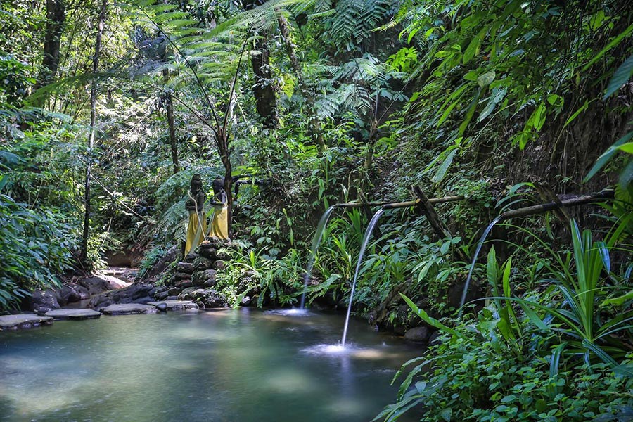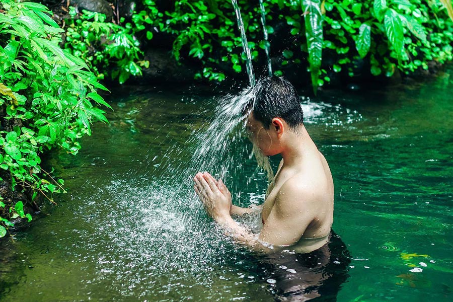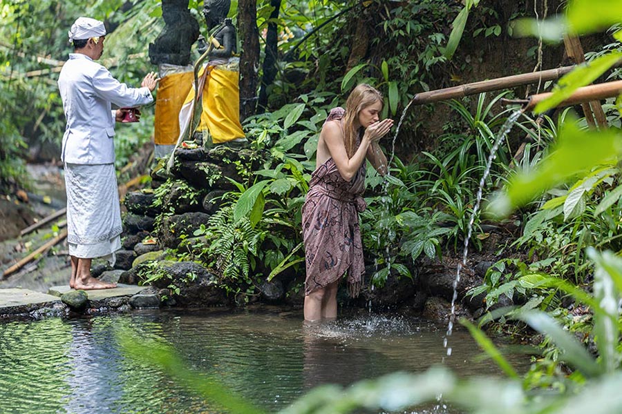 Located in a surrounding green environment, Pramana Giri Kusuma presenta healing sanctuary for blessing and cleansing in the natural holy waterto purify the body and mind. Pramana Giri Kusuma 坐落在綠樹環繞的環境中,是一個療癒聖地,人們可以在天然聖水中進行祝福和淨化,以淨化身心。