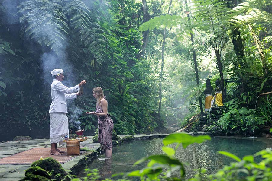 The healing sanctuary – The journey begins here to create a new experience. Discover, Heal, and Live. Step into our calm eucalyptus spa we will bring you to traditional and integrative treatment to optimize your body balance. Located in a surrounding green environment a eucalyptus spa has a special “Beji” named “Giri Kusuma Holy Spring Water” is the natural holy water to purify the body and mind. 療癒聖地-一段創造全新體驗的旅程由此開啟。探索、療癒、生活。步入我們寧靜的尤加利水療中心,我們將帶您體驗傳統與現代結合的療法,優化您的身心平衡。水療中心坐落於綠意環繞之中,擁有名為「義理庫蘇瑪聖泉水」的特製「貝吉」(Beji),這天然聖水能夠淨化身心。