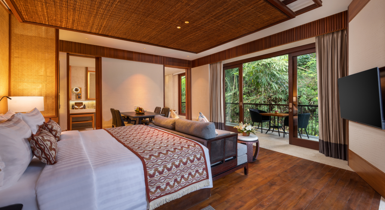 這座靈感源自優雅的卡姆波加花的靜謐居所,僅有12間套房,每間面積達56平方公尺。寬敞而精緻的套房,營造出私密靜謐的休憩之所,享受烏布的獨特魅力。每間套房均設有私人陽台,可俯瞰烏布迷人的叢林美景。