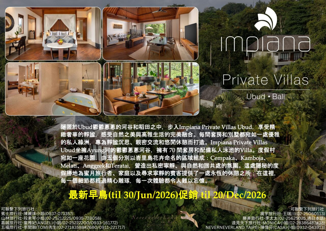 << Impiana Private Villas Ubud 最新早鳥(til 30/Jun/2026)促銷 til 20/Dec/2026 >>