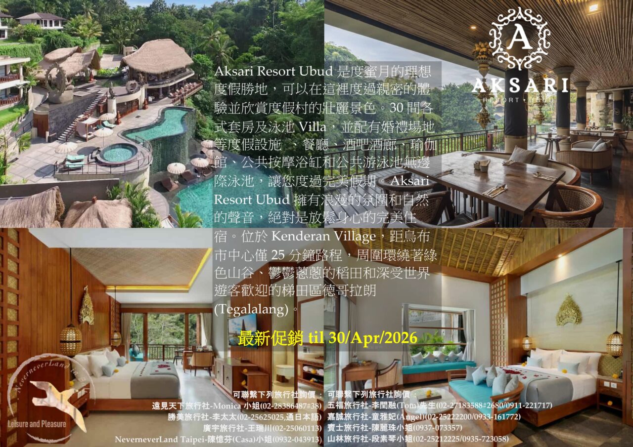 << iNi ViE Hospitality – Aksari Resort Ubud 最新促銷 til 30/Apr/2026 >>