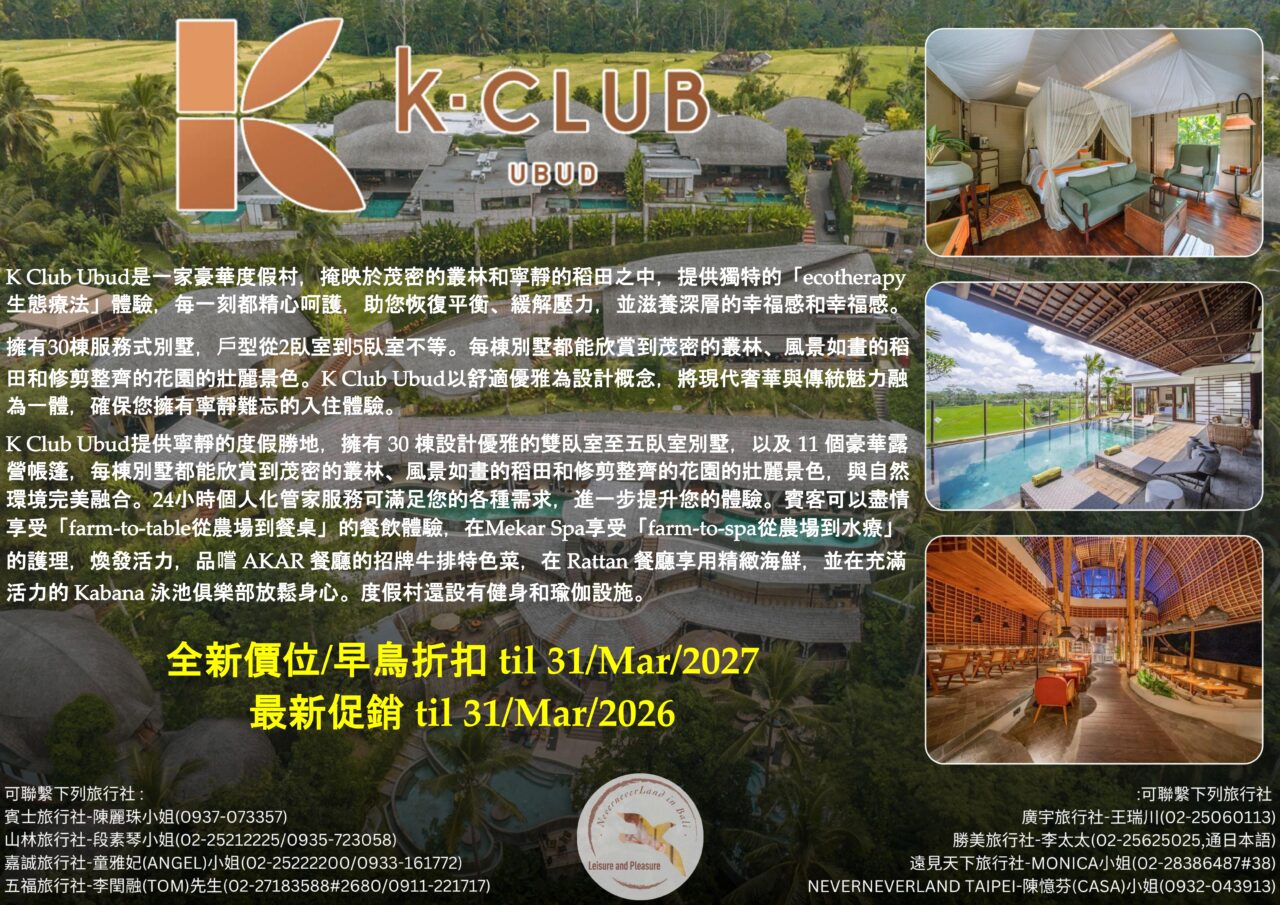 << K Club Ubud 全新價位/早鳥折扣 til 31/Mar/2027 & 最新促銷 til 31/Mar/2026 >>