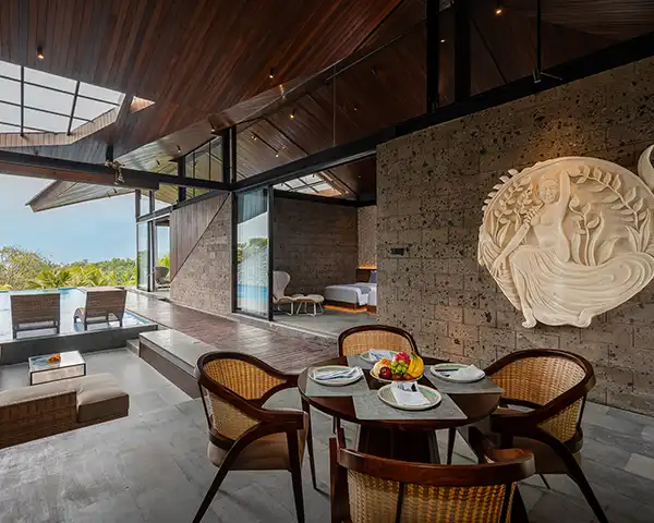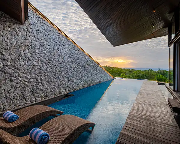 Khaya Luxury Villas 是一間隱密的海景私人泳池別墅群,由 6 棟別墅組成,提供一臥室、兩臥室和四臥室三種房間。每棟別墅都擁有壯麗的海景。傳統的峇里島屋頂、木質內裝和開放式空間設計,營造出溫馨而道地的氛圍。您可以在露臺上享受戶外時光,私人無邊際泳池俯瞰遠處的大海。放眼望去,盡是碧海藍天,令人心曠神怡。