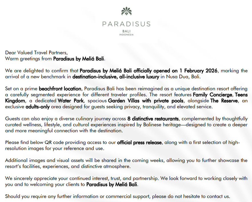 << Paradisus By Meliá Bali(原Meliá Bali) – Nusa Dua (2026/Feb/01重新開幕), 全新價位 til 31/Oct/2026 & 最新早鳥(B&B til 28/Feb/2026, All inclusive til 31/Mar/2026) promotion til 31/Oct/2026 >>