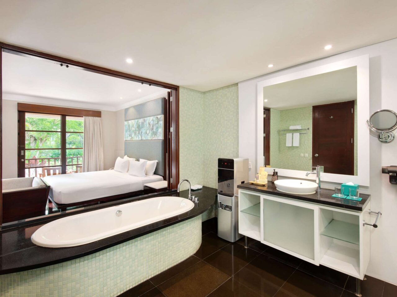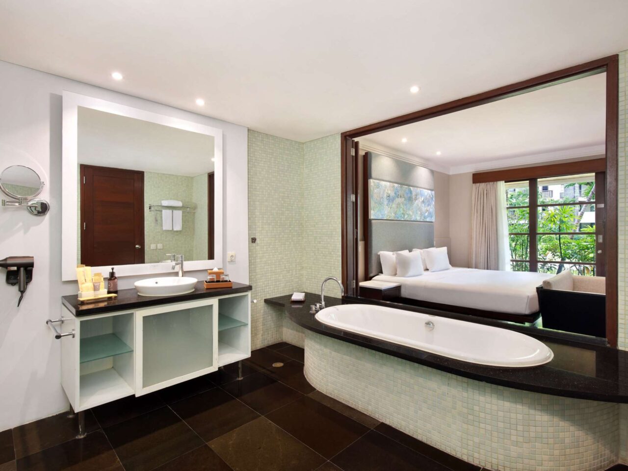 靠近Bali National Golf Club(2分鐘)、Nusa Dua Beach(步行5分鐘,乘坐班車2分鐘)和天然Water Blow等景點。Bali Collection的戶外購物和餐飲場所,免費班車。距 Bali Nusa Dua Convention Center努沙杜瓦會議中心也僅5分鐘車程。