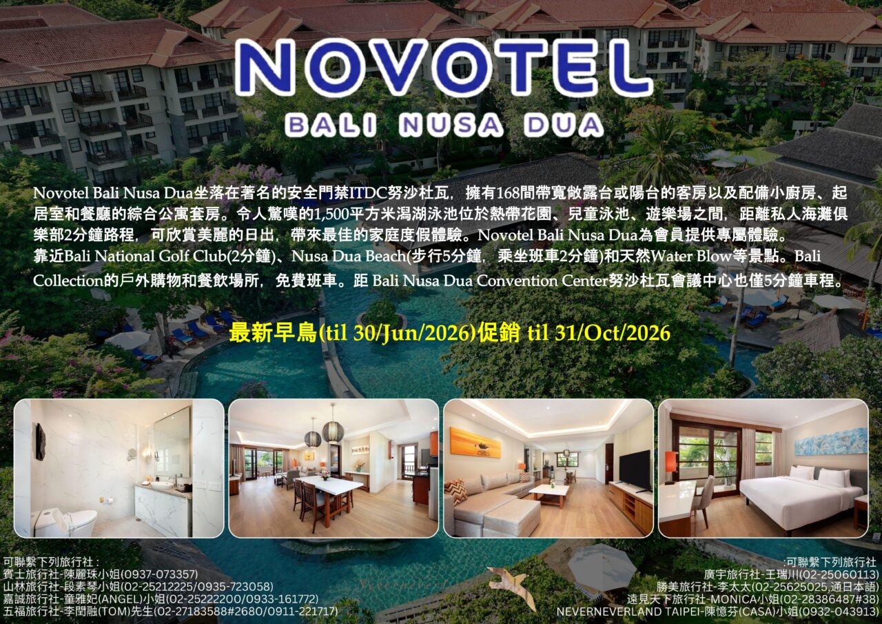 << Accor – Novotel Bali Nusa Dua – Hotel & Residences 最新早鳥(til 30/Jun/2026)促銷 til 31/Oct/2026 >>