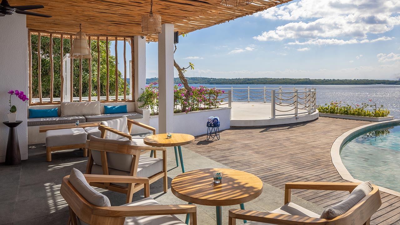 從餐桌飽覽壯麗海景,Acropora 餐廳設計輕盈通透,帶來獨一無二的用餐體驗。全天候供應的菜餚匯集世界各地美食,由才華橫溢的廚師團隊選用最新鮮的當地食材精心烹製而成。酒吧毗鄰主泳池,提供舒適的座位和豐富的飲品選擇,是享用清爽雞尾酒或品嚐晨間咖啡、閱讀好書的理想之所。