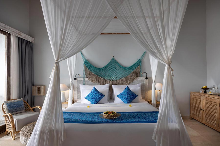 Pramana Natura Nusa Penida度假村的設計靈感源自於大自然,尤其是海洋世界,處處匠心獨運,力求讓您在每個角落都能感受到舒適與放鬆。精緻的細節和海洋色調,與周圍的自然美景相得益彰,營造出寧靜祥和的氛圍,讓您盡情享受。