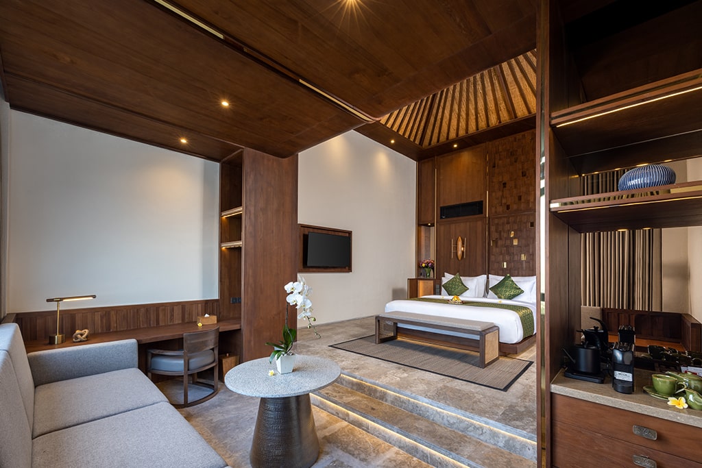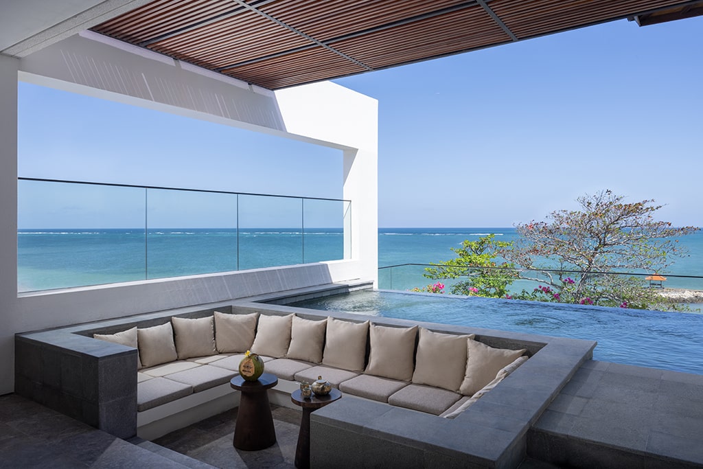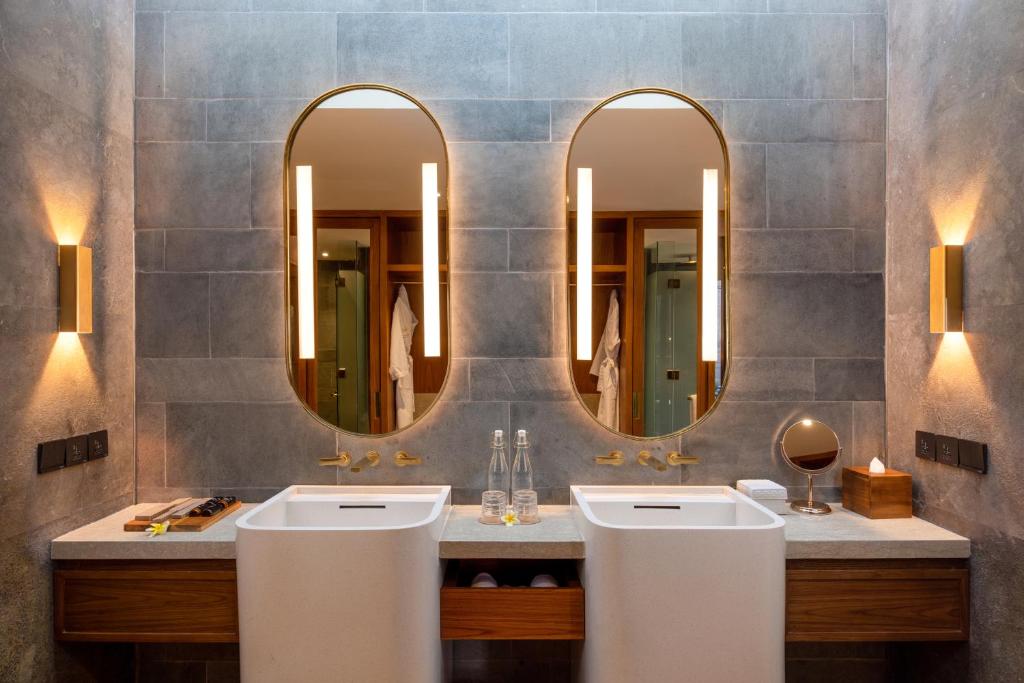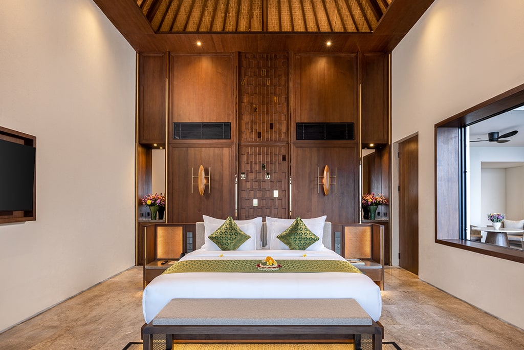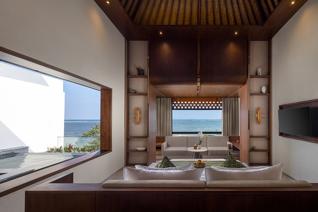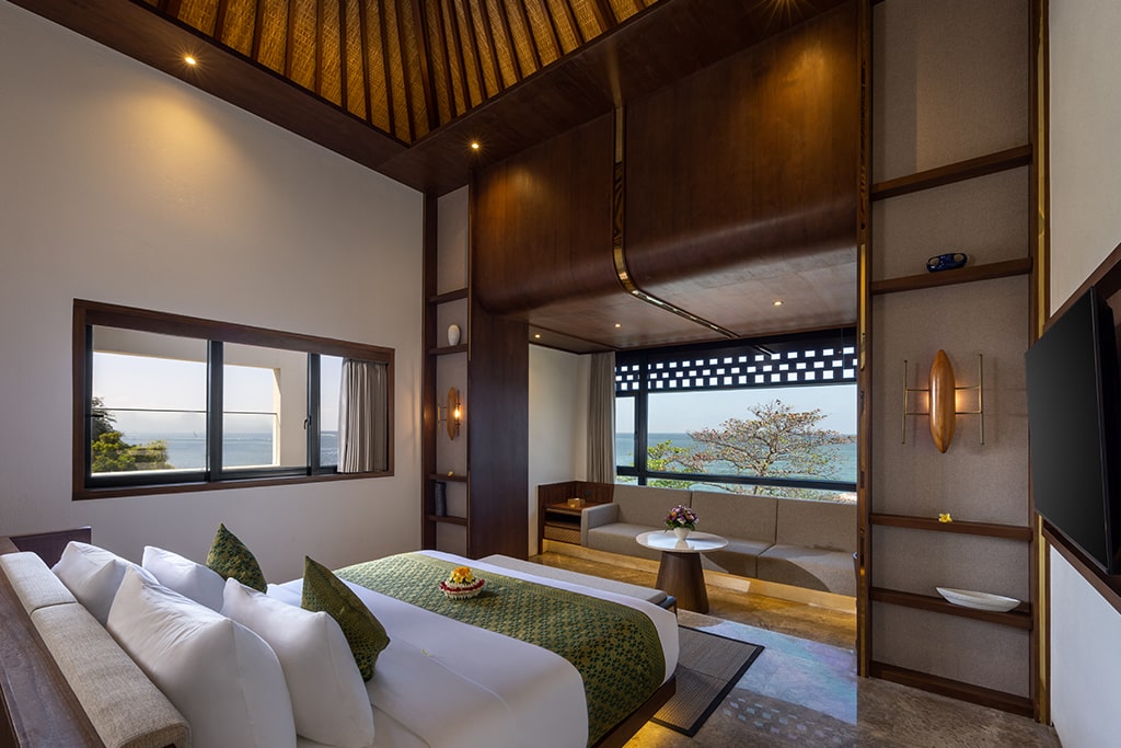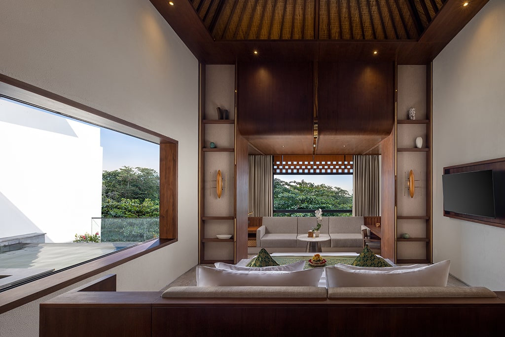 從將建築本身比作人體的「三界」(Tri Loka)概念中汲取靈感,並將這一理念融入住宿設計,旨在確保賓客在入住期間感受到和諧平衡。每棟別墅都經過精心選址,並沿中軸線巧妙佈局空間,賓客無論身處何處,都能欣賞到令人嘆為觀止的海岸線美景,例如在臥室、戶外泳池畔休憩,甚至在寬敞的浴缸中泡澡。