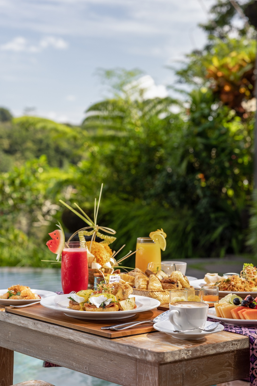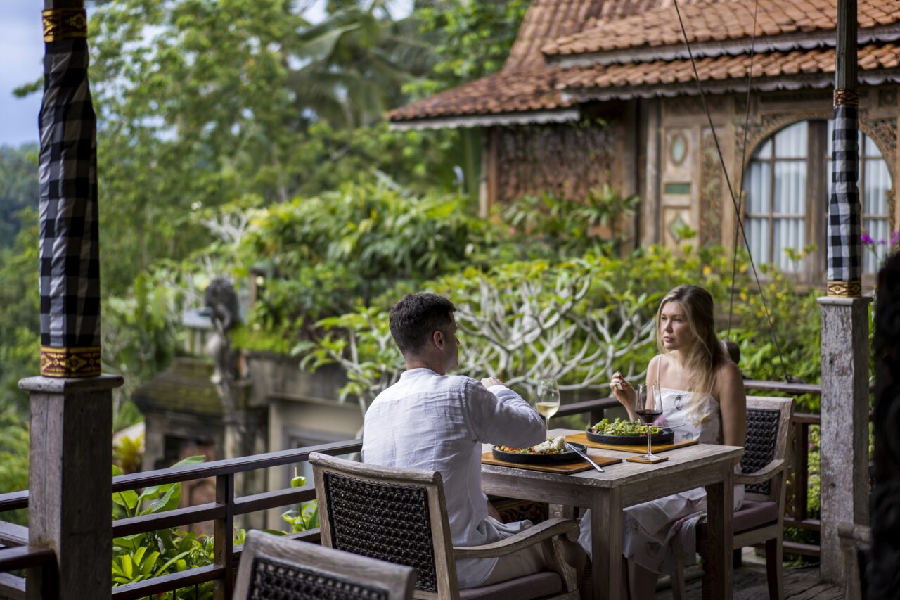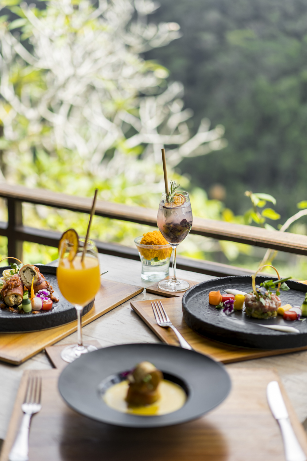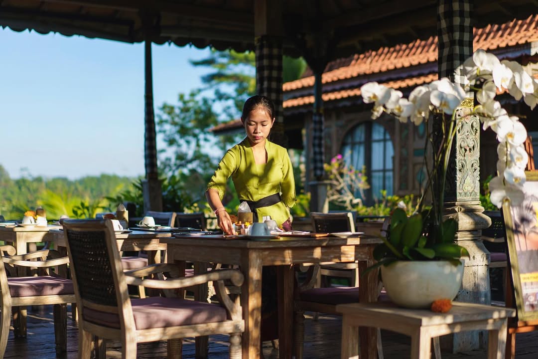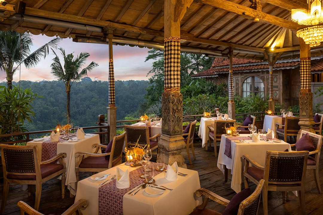 Pramana Watu Kurung的餐廳坐落於一座精美修復的古老爪哇傳統建築(Joglo)內,其精雕細琢的立柱展現了精湛的傳統工藝。這棟開放式建築可飽覽主泳池和周圍鬱鬱蔥蔥的叢林美景,營造出寧靜如畫的氛圍。餐廳永恆的風格提升了用餐體驗,讓賓客在品嚐美味佳餚的同時,也能充分調動感官享受。建築魅力與自然美景的完美融合,使這家餐廳成為令人難忘的用餐場所,每一餐都伴隨著非凡的視覺和感官體驗。