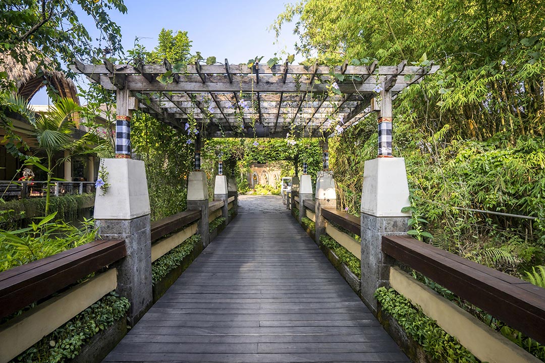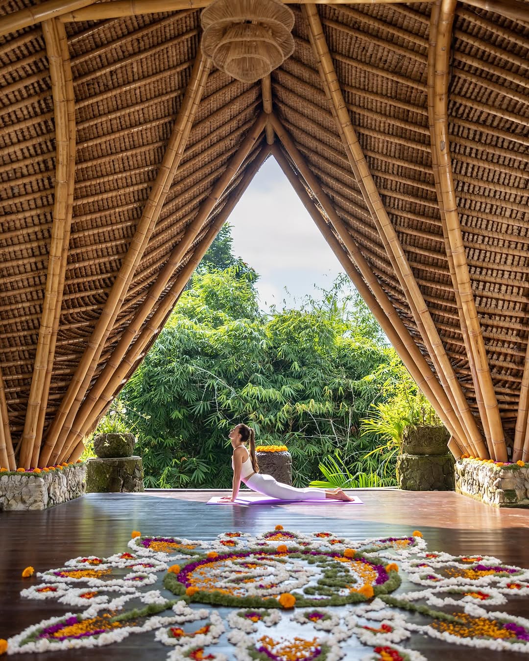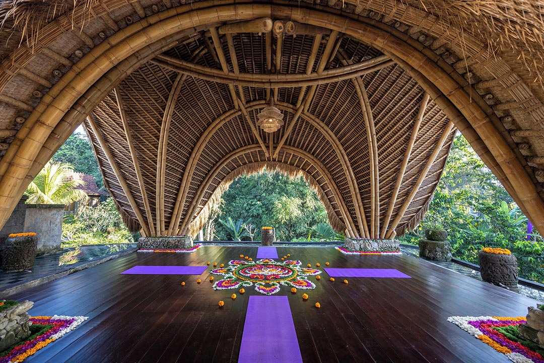 令人驚豔的屋頂露天瑜珈亭,可俯瞰自然森林和梯田美景。其設計建造充分考慮了瑜伽的特色,採用竹結構、木地板和類似“alang-alang”(一種傳統茅草屋頂)的屋頂,毗鄰SPA中心。