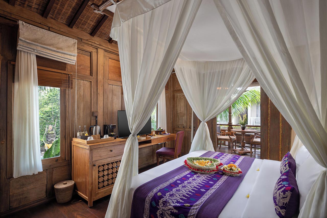 Pramana Suite設計精巧,採用正宗的峇里島風格,以當地石材和竹子為主要建材,並配有一系列手工雕刻的白色家具。這種設計體現了峇里島溫暖自然的精髓,美麗的庭院則將當地植物與奢華的藝術氣息巧妙融合。大量使用當地材料營造出寧靜祥和的氛圍,讓您在擁抱大自然的同時,也能享受到優雅的放鬆體驗。每間套房均設有私人露臺和專屬餐桌,邀請您在完全的寧靜中放鬆身心。這片靜謐的環境確保您擁有真正舒緩的體驗,是盡情放鬆和煥發活力的理想之選。