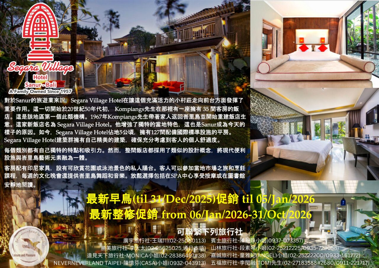 << Segara Village Hotel – Sanur 全新(til 31/Dec/2025)促銷 til 05/Jan/2026 & 最新裝修促銷 til 31/Oct/2026 >>