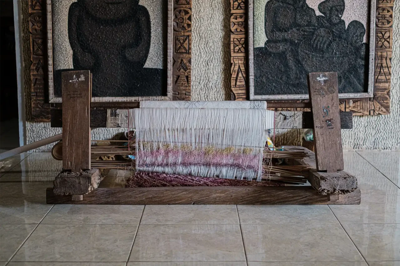 Craft sampian from coconut leaves while sipping tea and sharing stories.