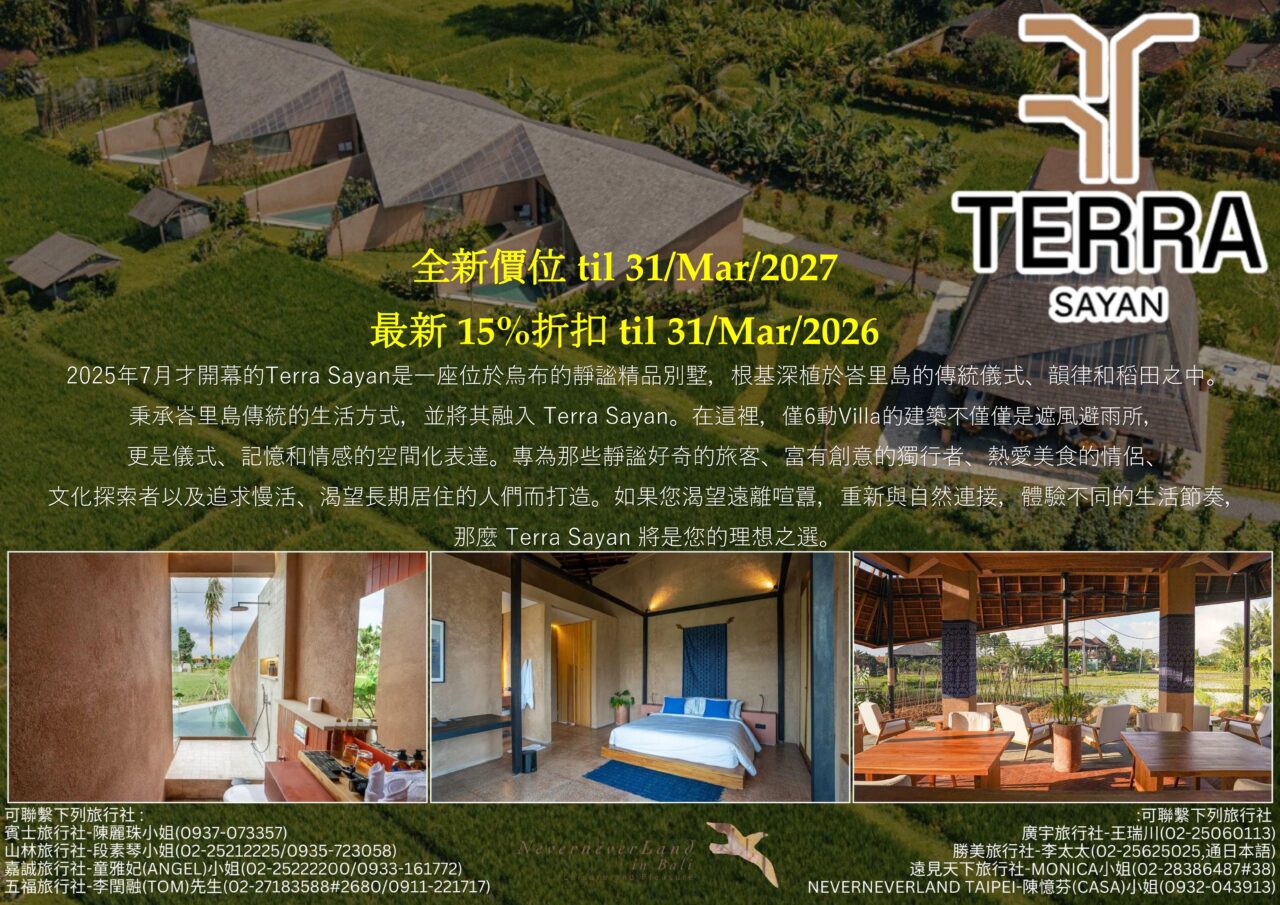 << Manguning – Terra Sayan Ubud 全新價位 til 31/Mar/2027 & 最新15%折扣 til 31/Mar/2026 >>