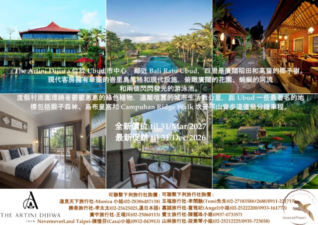 << The Artini Dijiwa Ubud 全新價位 til 31/Mar/2027 & 最新促銷 til 31/Dec/2026 >>