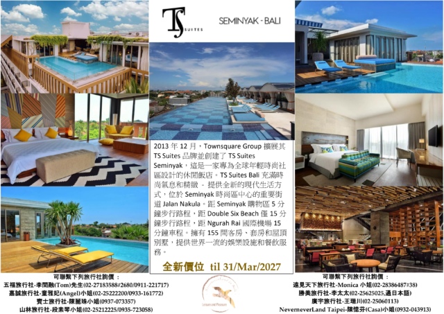 << TS Suites Seminyak Bali 全新價位 til 31/Mar/2027 >>