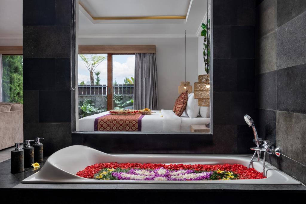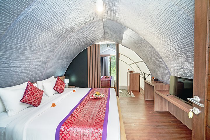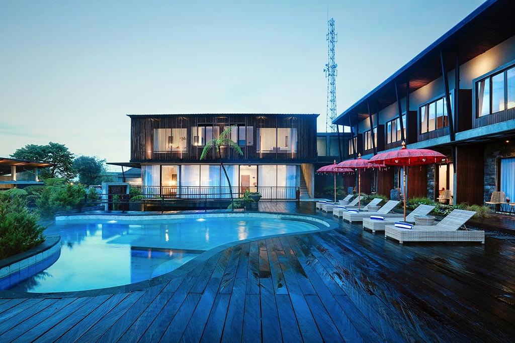這些建築的裝飾藝術風格與Kintamani的背景相得益彰,33個房間都採用當地材料設計,融入周圍景觀,而不是喧賓奪主,使該地區的自然美景成為主要吸引力。