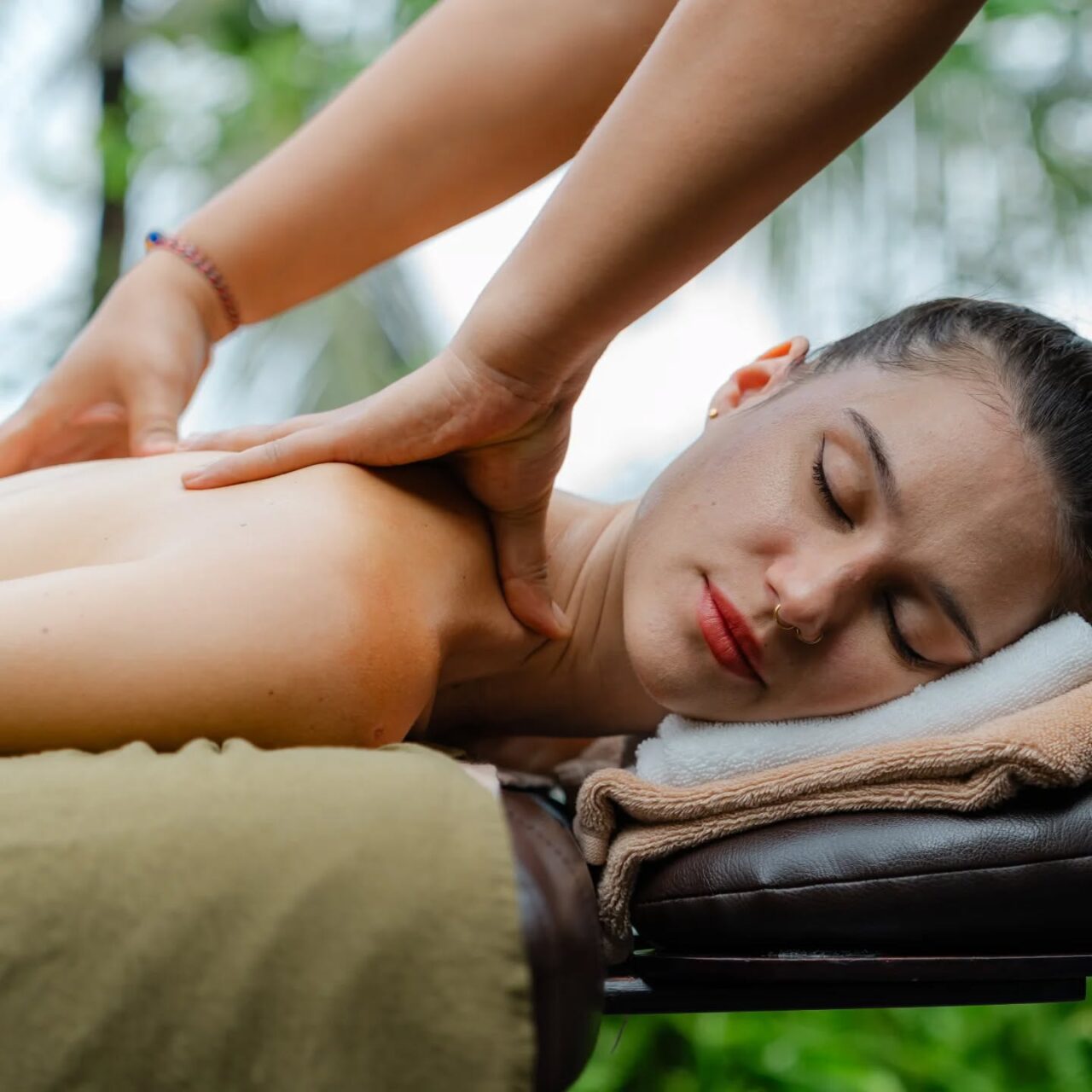 Four-handed massage is a deep tissue massage performed by two therapists using herb-infused oils. Their synchronized movements help relieve stress, relax muscles, improve circulation, and enhance sleep quality.